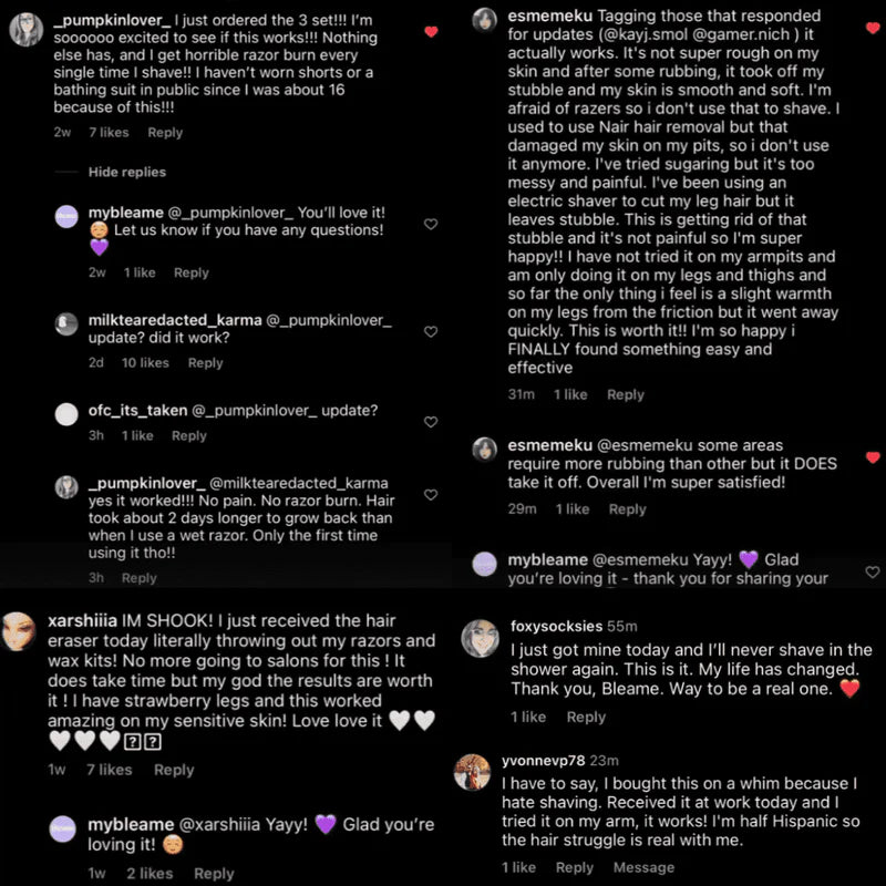 We love our BuzzBay™ Crystal Hair Eraser and are confident you will too! That’s why we’re offering a 30-Day Guarantee. If you’re not satisfied, we’ll be happy to review your case and see how we can help! 💜